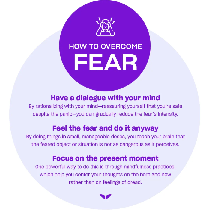 Langkah pertama yang dapat dilakukan adalah mengidentifikasi penyebab dari rasa takut tersebut. Setelah itu, cobalah untuk merencanakan langkah-langkah konkret untuk menghadapi rasa takut sebelum memulai sesuatu. Misalnya, jika takut berbicara di depan umum, latihlah kemampuan berbicara di depan cermin atau berpartisipasi dalam kelompok diskusi kecil.